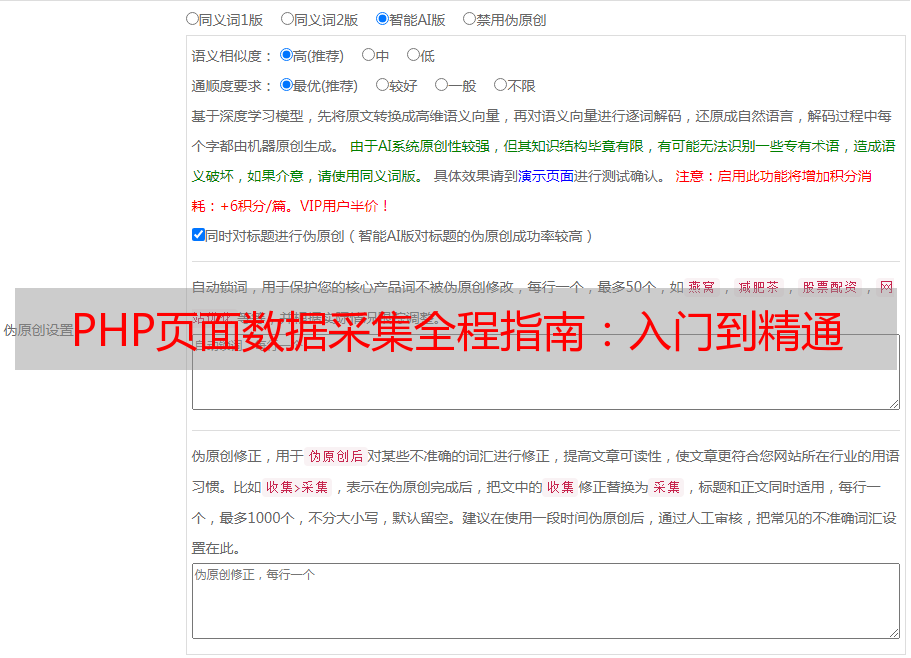 优采云 发布时间: 2023-03-04 23:09在当今信息时代,数据采集已经成为一项非常重要的技能。作为一名PHP开发人员,如何使用PHP实现网站数据采集呢?本文将从入门到精通,为大家详细介绍PHP页面数据采集的全过程。