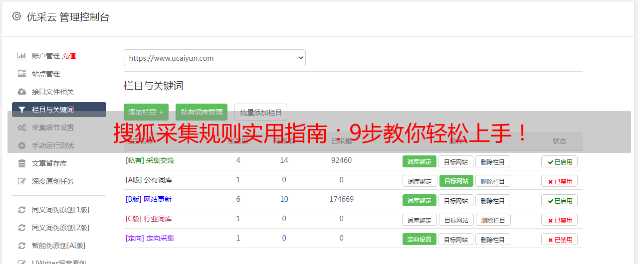 通过本文我们了解了什么是搜狐采集规则以及如何使用它来提升自己网站流量,并且还学习了如何防止被搜索引擎惩罚以及如何评估效果。同时我们也介绍了一个专业SEO优化平台——优采云,并且分享了它提供给我们各种实用功能和工具。相信读者们通过本文能够更好地掌握这些知识,并且运用它们来提升自己网站流量和SEO优化效果。如果您想深入学习更多相关知识,请访问 www.ucaiyun.com 了解更多。