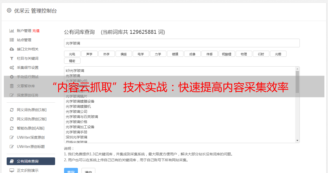 优采云 发布时间: 2023-03-05 09:13内容云抓取是一种新兴的技术,它可以帮助你将自己的内容快速地传播到各个平台和渠道上,无论是网站、社交媒体还是移动应用,都可以轻松实现。下面,我们来详细了解一下这项技术。