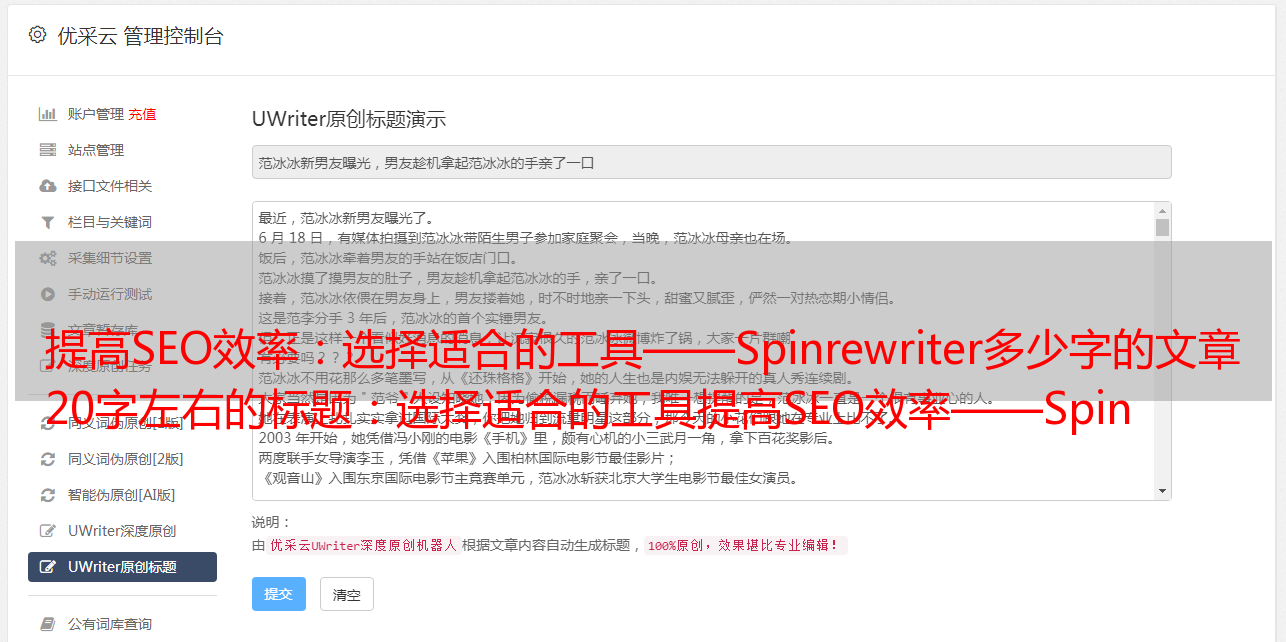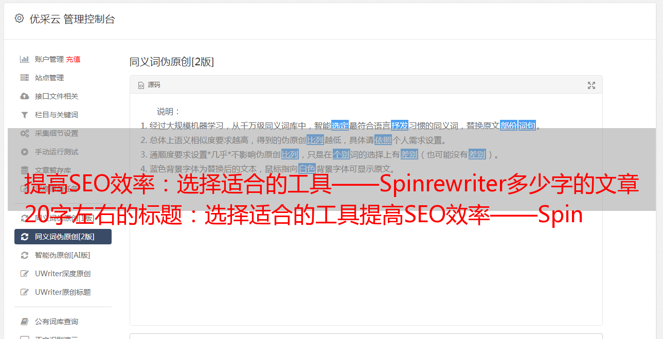 提高SEO效率:选择适合的工具——Spinrewriter多少字的文章 20字左右的标题:选择适合的工具提高SEO效率——Spinrewriter多少字的文章