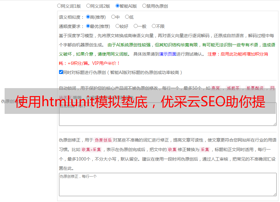 使用htmlunit模拟垫底,优采云SEO助你提高网站排名!