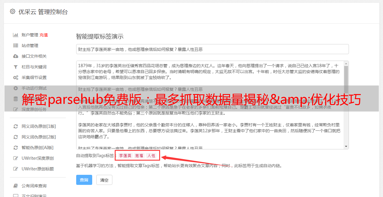 解密parsehub免费版:最多抓取数据量揭秘&优化技巧