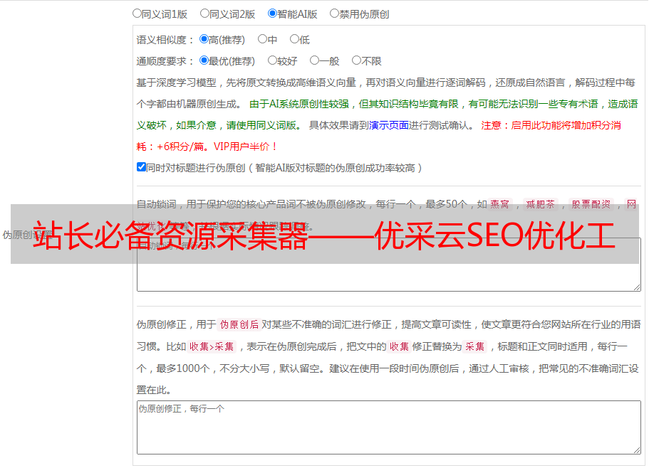 通过智能去重功能,优采云可以自动排除重复内容,避免浪费时间和精力。同时,该功能还可以有效降低网站被搜索引擎惩罚或封杀的风险。