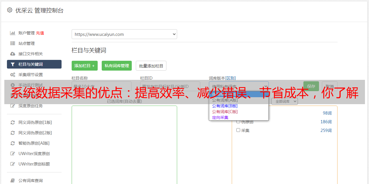 总之,系统数据采集在现代企业管理中扮演着越来越重要的角色。它不仅可以帮助企业获得竞争优势、改善用户体验等方面取得成功,还有利于降低成本、提高效率等方面取得进步。如果您需要专业可靠的数据采集服务,请联系我们:www.ucaiyun.