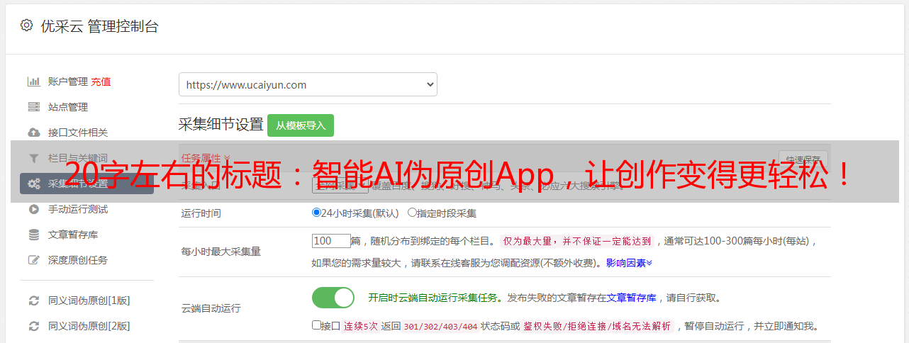 以上就是关于“智能AI伪原创APP”的详细分析介绍。如果您对此感兴趣或有相关需求,请登录www.ucaiyun.com获取更多信息!