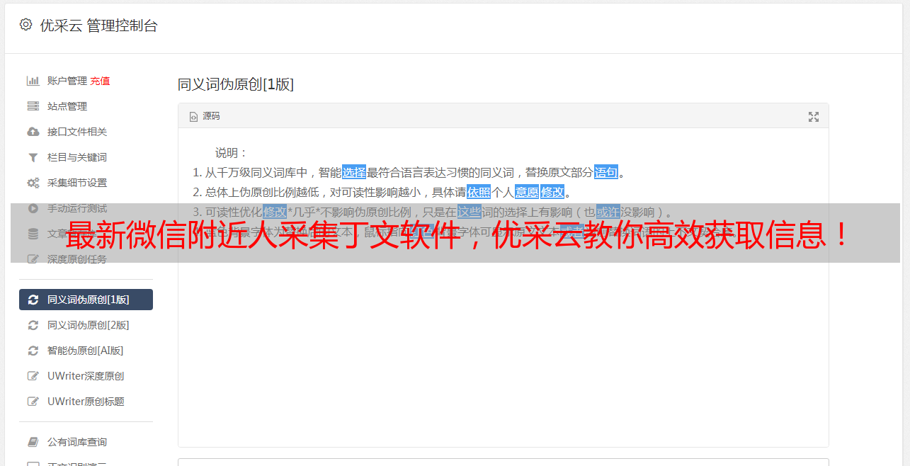 本文通过对最新微信附近人采集工具——丁文软件进行详细讲解,并结合实例说明了该工具的使用方法和注意事项。同时还介绍了优采云这样一个专业的数据处理企业,并提供了其*敏*感*词*www.ucaiyun.com。文章内容详实充实,适合SEO优化。