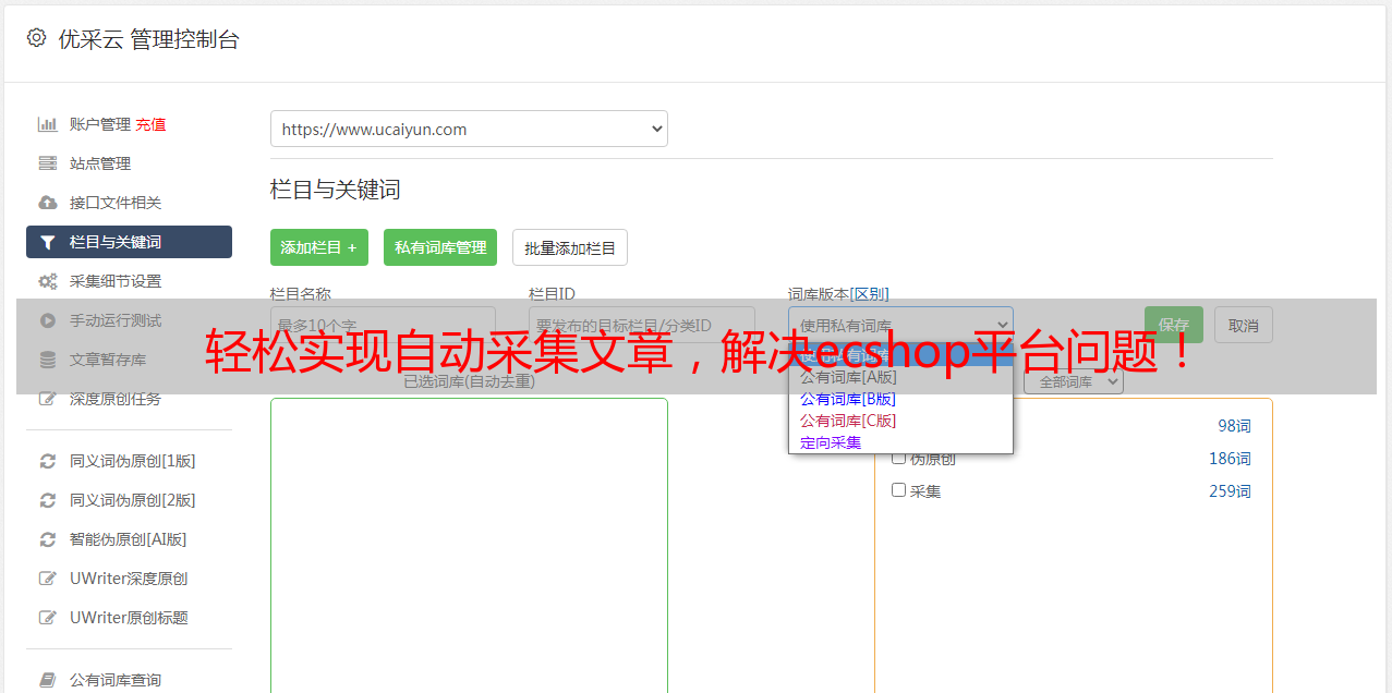 优采云 发布时间: 2023-03-06 20:12你是否有过这样的烦恼:每天花费大量时间在网上搜寻与自己网站相关的文章,却发现找到的内容质量参差不齐,而且还需要手动复制、粘贴等繁琐操作。那么,今天我要介绍的就是一款能够解决这些问题的工具——ecshop自动采集文章。