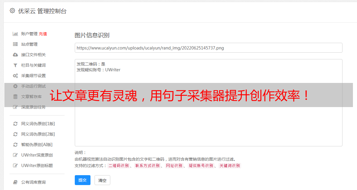 优采云 发布时间: 2023-03-07 07:10作为一名自媒体从业者,我们都知道写作是一项非常重要的技能。而在写作过程中,最需要注意的就是如何让文章更有灵魂,更有吸引力。这时候,句子采集器就成为了我们必不可少的利器。