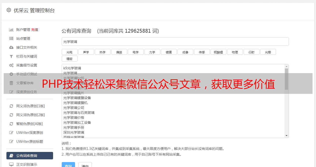 通过以上介绍,相信大家已经了解了如何使用PHP技术实现微信公众号文章采集。但是,在进行采集操作时应注意遵守法律法规和社会道德规范,并根据自身情况把握好发布频率和数量。最后推荐一下优采云(www.ucaiyun.com),帮助你更好地实现SEO优化效果。