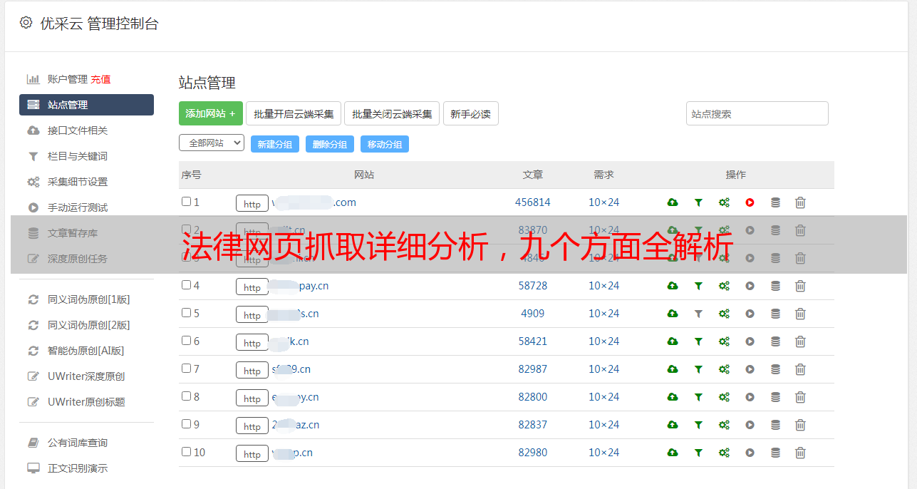 优采云 发布时间: 2023-03-08 15:21随着互联网的快速发展,越来越多的法律信息被发布在网上。然而,由于各种原因,这些信息并不总是容易获取和整理。在这种情况下,法律网页抓取技术成为了一种非常有用的工具。本文将从以下九个方面对法律网页抓取进行详细分析。