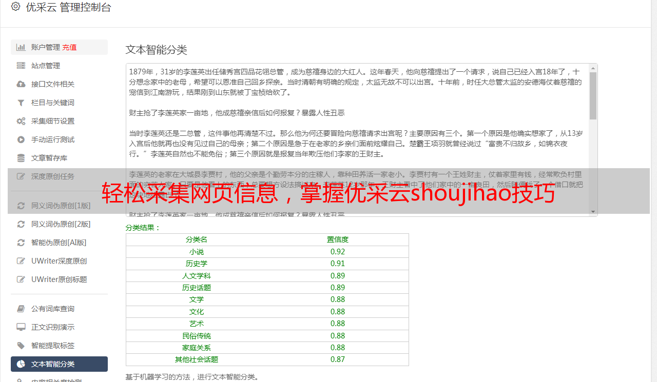 本文从多个方面介绍了如何使用优采云进行网页采集,并提供了一些实用技巧和建议。相信读者们已经对如何获取手机号有了更深入的理解和认识。如果您还没有尝试过优采云,请赶紧注册一个账号试试吧!