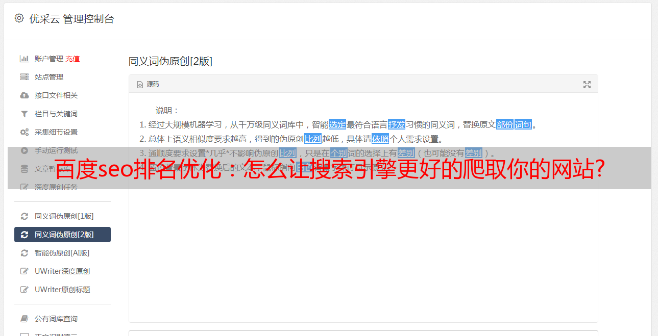 优采云 发布时间: 2021-06-11 05:08百度seo排名优化:怎么让搜索引擎更好的爬取你的网站?