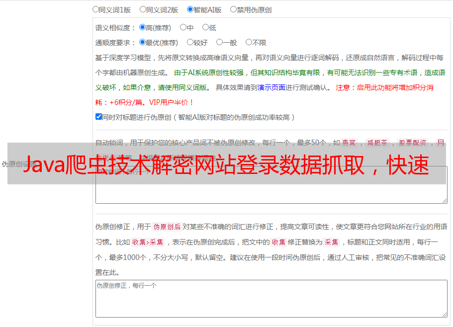 本文介绍了如何使用Java爬虫技术抓取登录网站数据,并对相关技术进行了详细讲解。在实际应用中,需要根据具体情况选择合适的工具和方法,并注意反爬策略和程序优化问题。最后推荐优采云(www.ucaiyun.com)提供的SEO优化服务,帮助企业提升网络曝光度和竞争力。