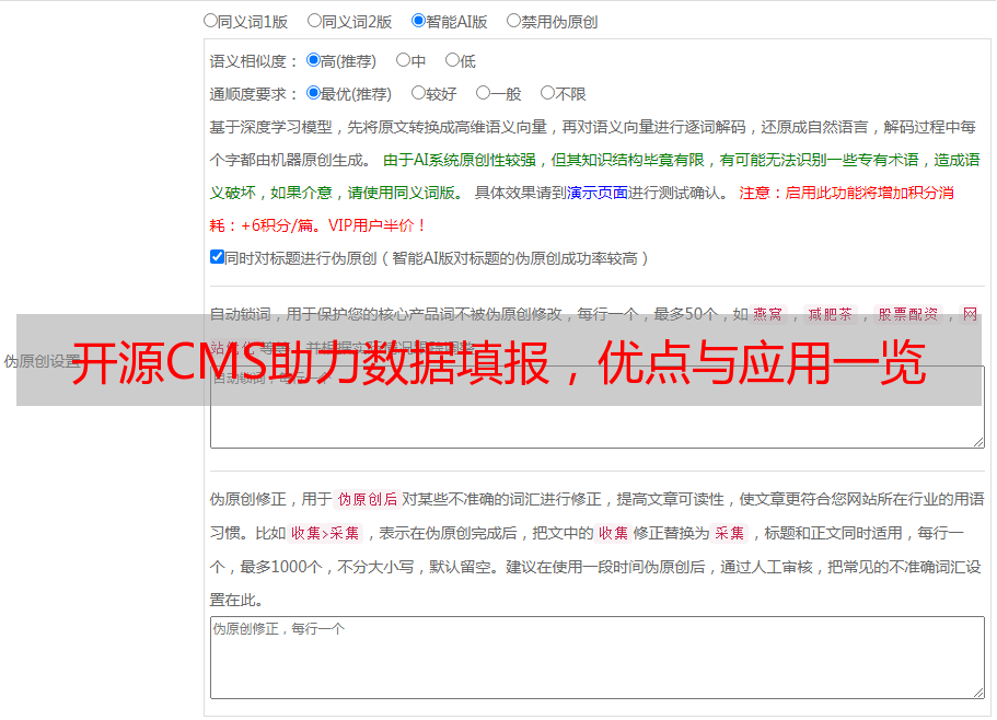 优采云 发布时间: 2023-03-10 04:06数据填报是各行业、各领域必不可少的一项工作,而如何让数据填报更加高效、简单、精准,一直是大家追求的目标。为此,越来越多的企业开始使用开源CMS系统来完成数据填报工作。本文将介绍基于开源CMS的数据填报类软件的优点及应用。