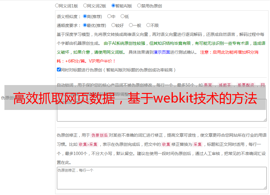 与传统的手动采集方式相比,使用webkit抓取网页数据具有以下优势: