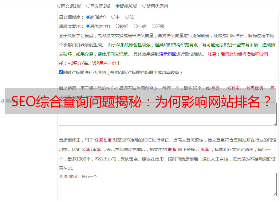 黑帽技术是指利用各种手段来提高网站排名的行为。这些手段通常违反了搜索引擎规则,并且存在风险性。例如,大量使用关键词堆砌、购买链接等行为都被视为黑帽技术。如果某个网站使用了黑帽技术来提高排名,则其真实排名与SEO综合查询结果可能存在巨大差异。