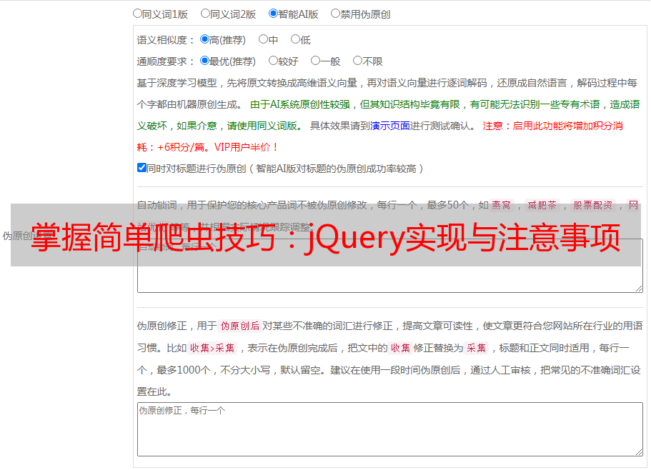掌握简单爬虫技巧:jQuery实现与注意事项