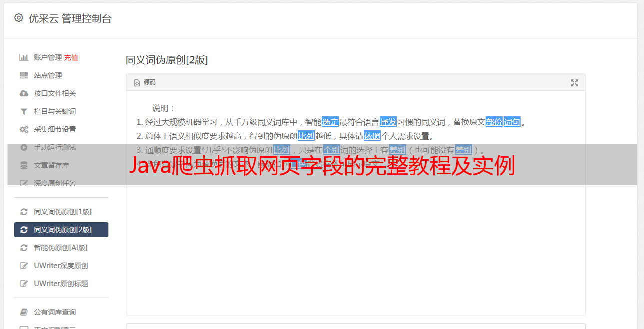 优采云 发布时间: 2023-03-10 20:14在互联网时代,数据是无处不在的。而对于某些特定的需求,我们需要从网页中获取特定的数据,这时候就需要用到爬虫技术。本文将介绍如何使用Java编写爬虫抓取网页某个字段,并提供详细的步骤和实例。
