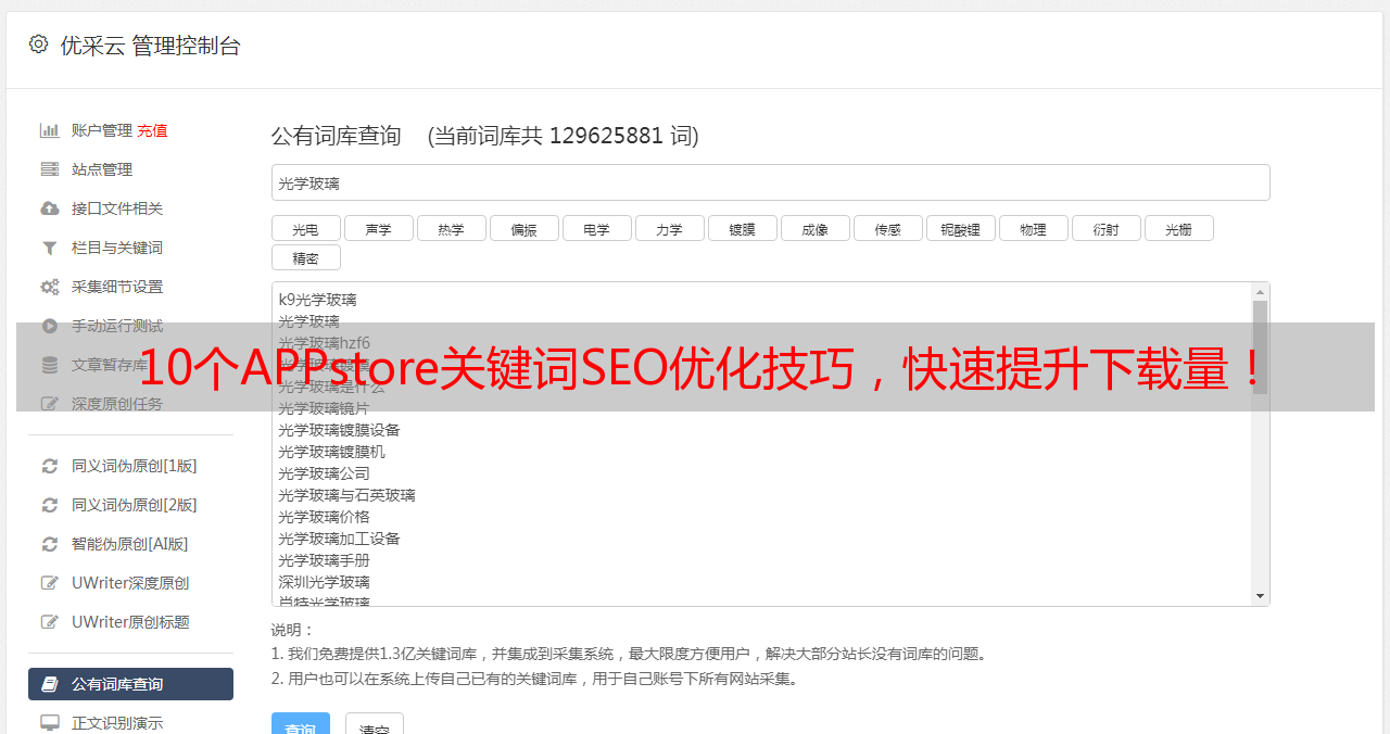 优采云 发布时间: 2023-03-11 03:10App Store是苹果公司推出的应用商店,是iOS系统上获取应用程序的主要途径。在这个数字化时代,每个人都可以通过开发应用程序来创造自己的财富。但是,开发者们发现,即使拥有一个好的APP,也很难被用户发现。那么,如何才能让你的APP更容易被搜索到呢?本文将从10个方面为您详细讲解如何用SEO优化提升APP下载量。