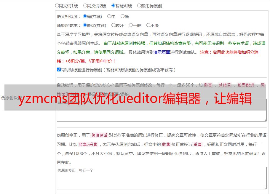 SEO优化是网站运营过程中必不可少的一环。然而,在原版的ueditor中,并没有针对SEO做出特别优化。而在yzmcms修改后的ueditor中,则针对SEO进行了相关调整和优化。