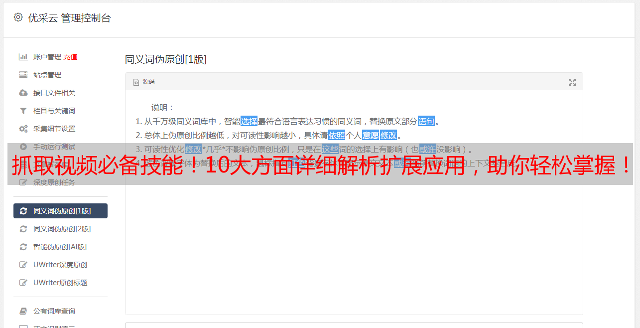 优采云 发布时间: 2023-03-11 22:13随着互联网的发展和普及,视频已成为人们获取信息、娱乐休闲的重要方式。而对于从事网络营销、教育培训等行业的人来说,抓取视频成为了一项必备技能。本文将从10个方面分析抓取视屏的扩展,帮助读者更好地掌握这项技能。