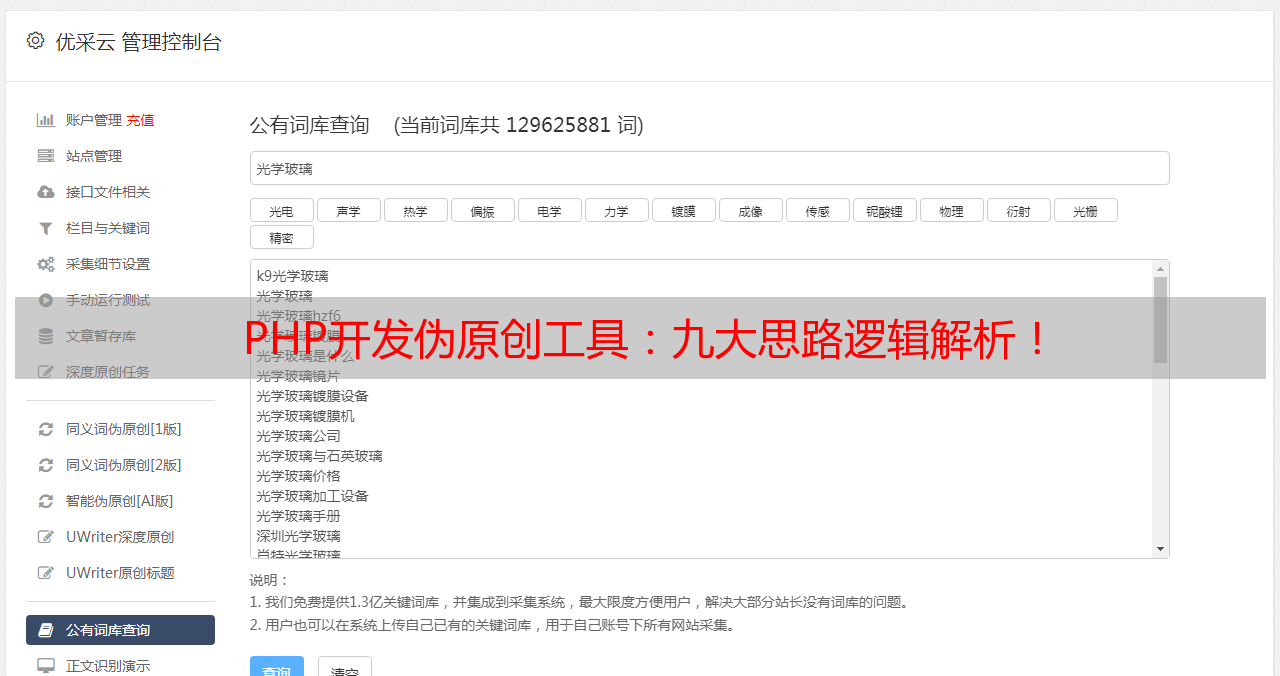 优采云 发布时间: 2023-03-12 02:08众所周知,在当今互联网时代,内容创作已经成为各行业的必备技能,但是如何保证内容的原创性却是一个难题。因此,伪原创工具应运而生。本文将从以下九个方面详细分析PHP开发伪原创工具的思路逻辑。