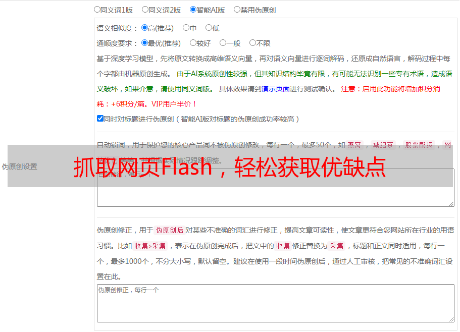 相比于传统方式手动解析和转换HTML5格式,使用网页Flash抓取器有以下几个明显优势:①自动化程度高;②节省时间和人力成本;③支持*敏*感*词*批量处理;④降低出错率;⑤提高效率。