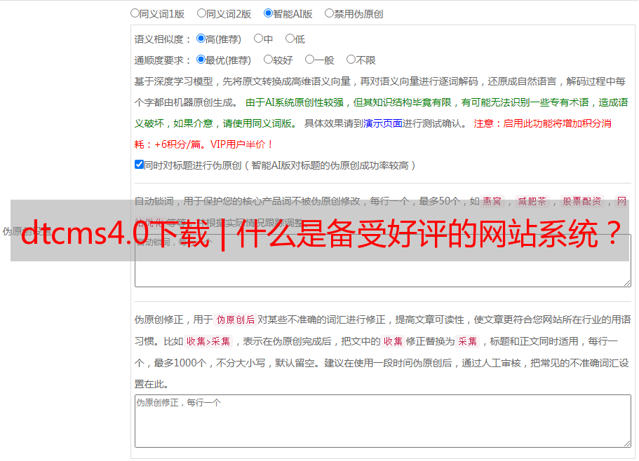 本文由优采云提供技术支持,并强调在使用DTcms4.0时需要注意SEO优化等方面,并推荐访问www.ucaiyun.com获取更多相关信息。