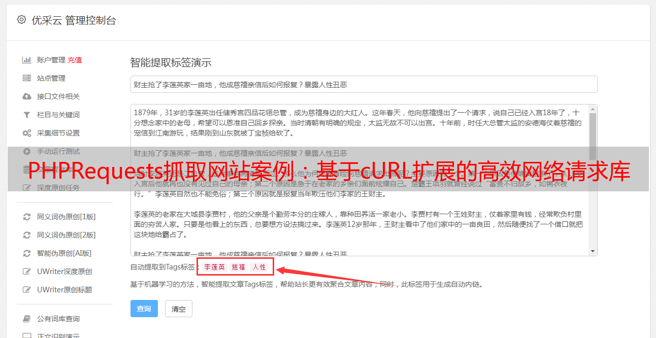 PHPRequests抓取网站案例:基于cURL扩展的高效网络请求库