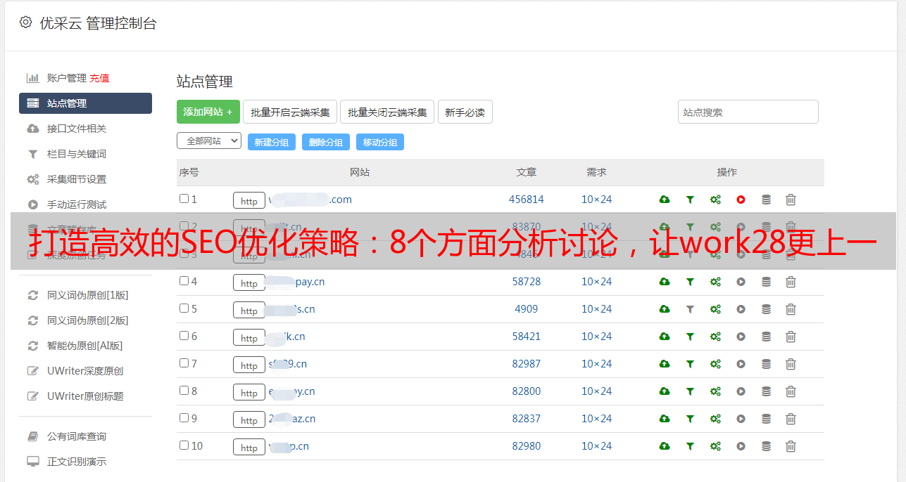 优采云 发布时间: 2023-03-12 15:15随着互联网时代的到来,SEO优化已经成为了企业网络营销中不可或缺的一部分。在这个竞争激烈的市场,如何打造一个高效的SEO优化策略,成为了每一个企业家和网络营销人员必须面对的问题。本文将从8个方面逐步分析讨论,帮助您打造一个高效的SEO优化策略。