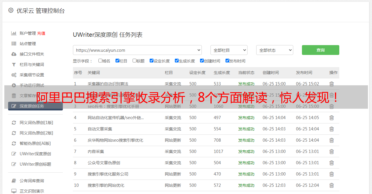 优采云 发布时间: 2023-03-12 22:15随着互联网的发展,搜索引擎已经成为人们获取各种信息的主要途径。而在这些搜索引擎中,阿里巴巴搜索引擎备受关注。本文将从8个方面分析阿里巴巴搜索引擎收录的情况,帮助大家更好地了解这一搜索引擎。