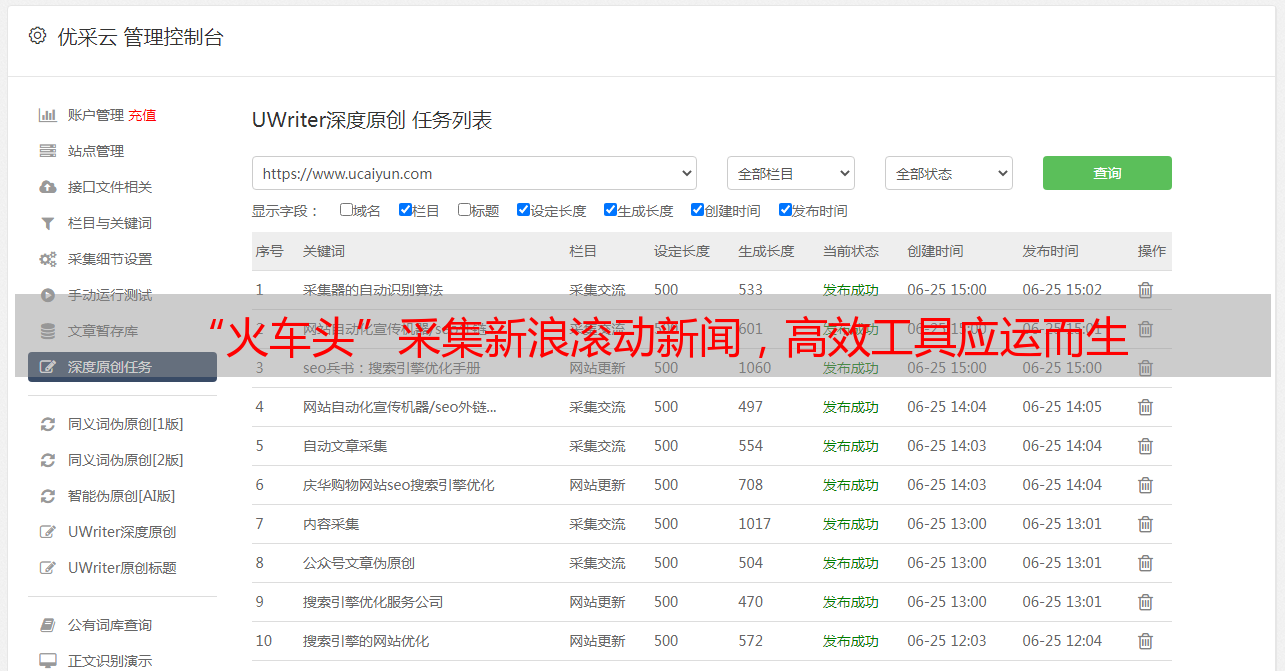 优采云 发布时间: 2023-03-13 00:11自媒体时代,信息爆炸,获取有价值的信息成为了每个人的需求。而新闻作为一种重要的信息源,更是备受关注。然而,每天繁琐的新闻筛选和阅读却让人感到疲惫。在这样的情况下,火车头应运而生,成为了一个高效、智能、便捷的新闻采集工具。