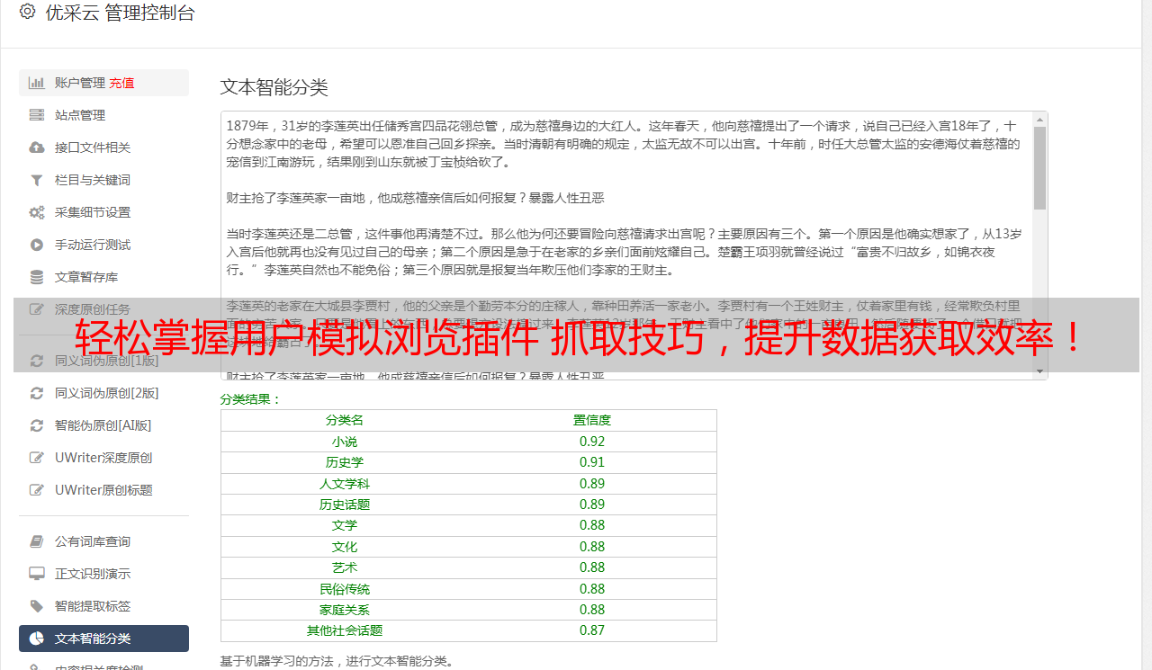优采云 发布时间: 2023-03-13 10:19近年来,随着互联网的快速发展,越来越多的企业开始意识到网站优化对企业发展的重要性。而在网站优化中,用户模拟浏览插件抓取已经成为了一种常见的手段。本文将详细介绍用户模拟浏览插件抓取的相关知识和使用方法,帮助读者更好地了解和应用该技术。