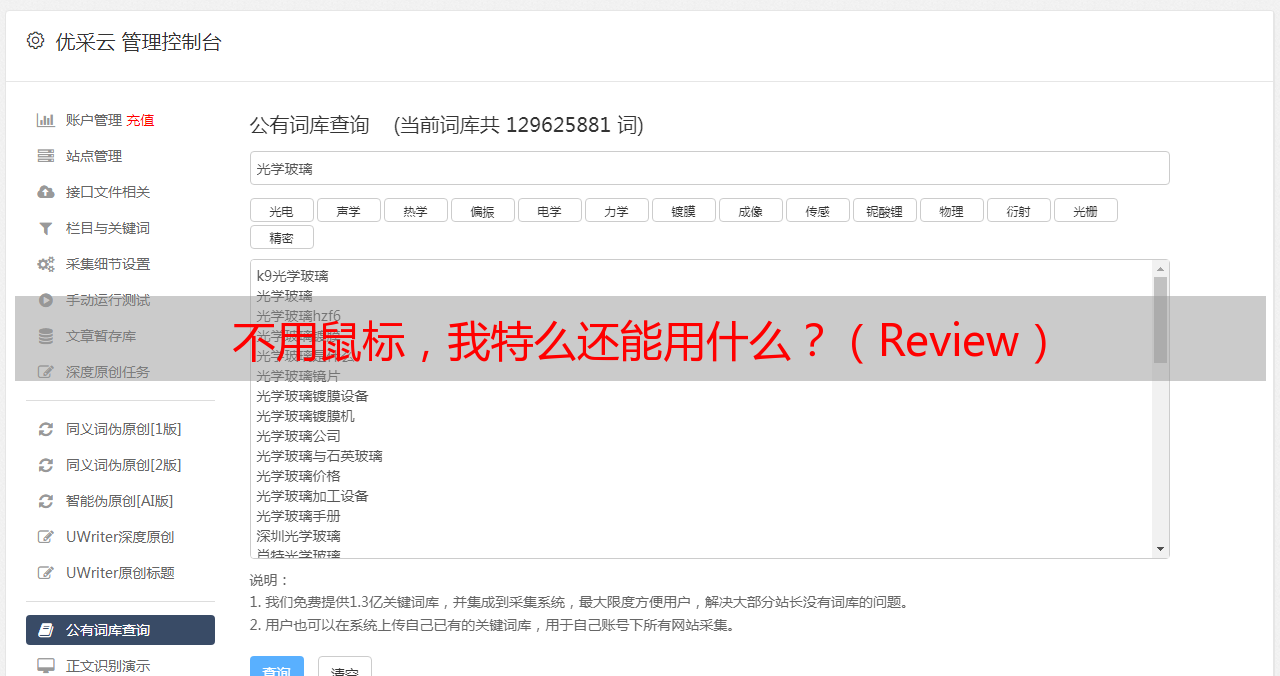 优采云 发布时间: 2021-06-11 19:45不用鼠标,我特么还能用什么?(Review)
