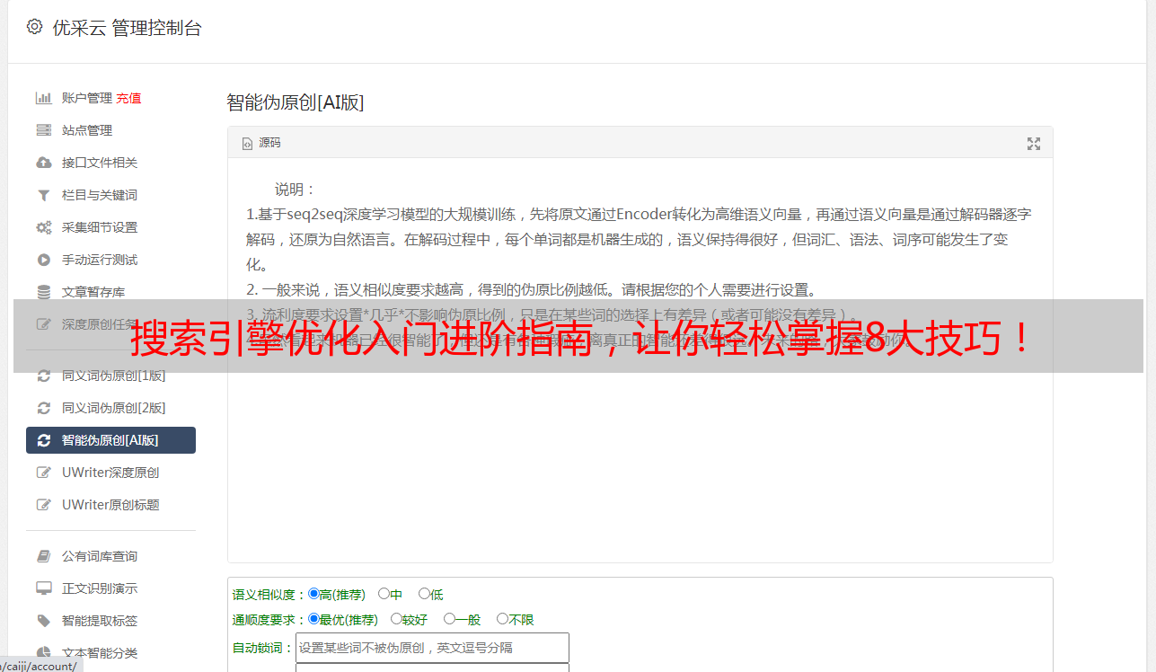 优采云 发布时间: 2023-03-13 23:11随着互联网的快速发展,越来越多的企业开始关注搜索引擎优化。SEO是一种通过优化网站结构、内容和外部链接等方式,提高网站在搜索引擎自然排名中的位置,从而获得更多流量、提高品牌知名度和销售额的技术。本文将从8个方面,详细分析SEO优化的入门与进阶。