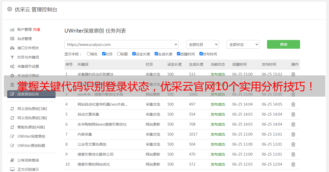 掌握关键代码识别登录状态,优采云官网10个实用分析技巧!