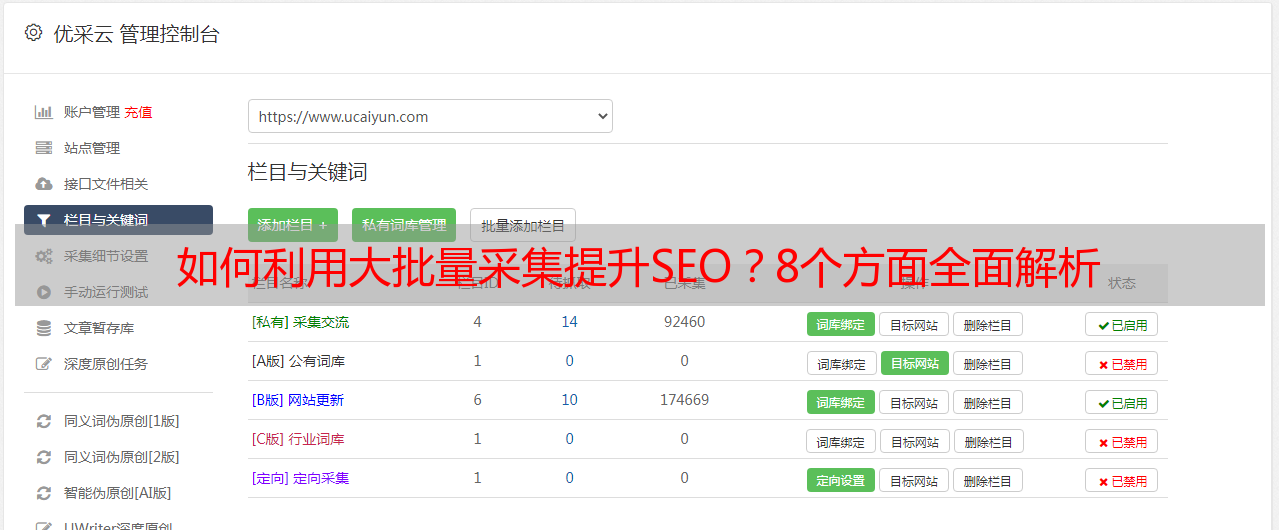 优采云 发布时间: 2023-03-14 07:11随着互联网的快速发展,SEO(搜索引擎优化)已成为网络营销的重要手段之一。而对于SEO从业者来说,数据采集是必不可少的一环。那么,大批量采集对SEO有没有作用呢?本文将从以下八个方面进行分析讨论。