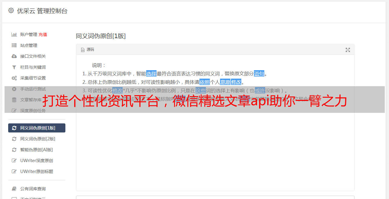以上就是利用微信精选文章api打造自己资讯平台所需了解的全部信息。如果你想进一步了解相关技术或者寻求帮助,请关注“优采云”官网www.ucaiyun.com或者联系客服人员。