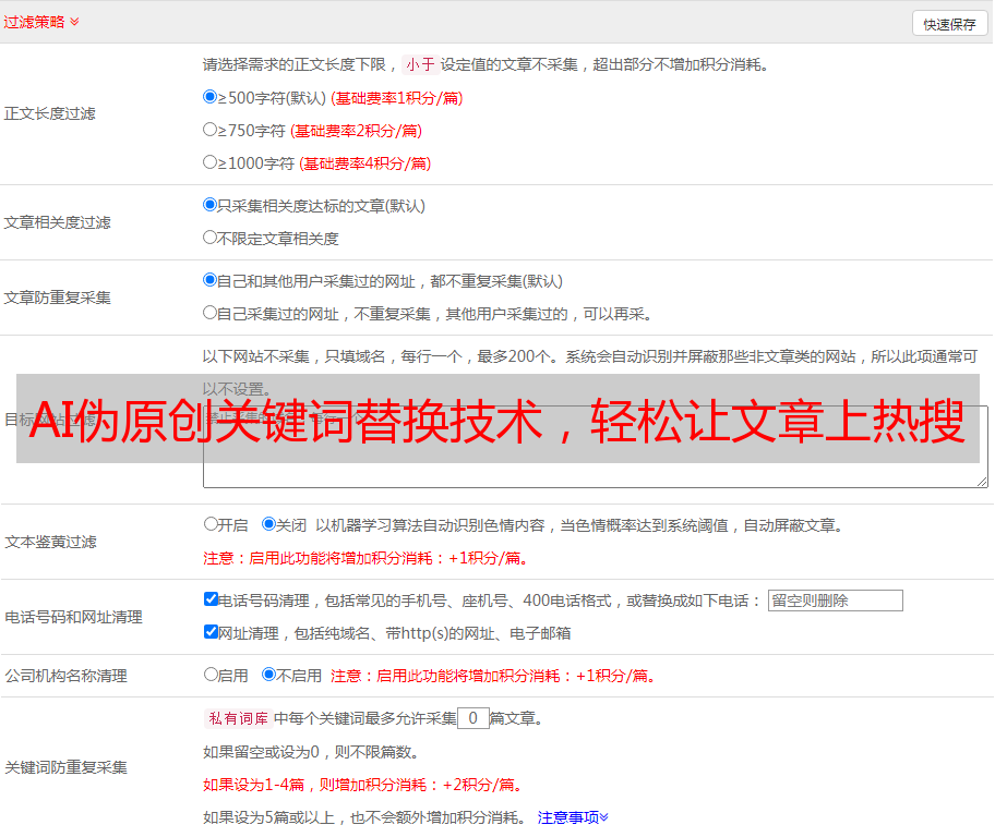 优采云 发布时间: 2023-03-14 10:19自媒体时代,内容为王,SEO优化更是至关重要。然而,每天发布的文章千篇一律,如何让自己的文章突出重围?今天,我们来聊一下AI伪原创关键词替换技术,在不改变文章意思的前提下,轻松让文章上热搜。