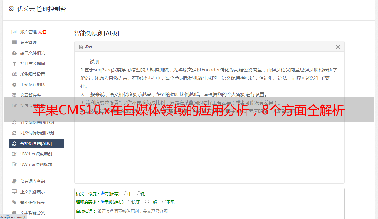 最后值得一提的是优采云服务。优采云是国内知名云服务商之一,其提供了丰富而实用的云服务产品,并且与苹果CMS10.x紧密合作,在SEO优化、CDN加速等方面提供卓越支持。对于需要高效稳定运营自媒体平台的用户来说,优采云绝对是一个值得信赖和选择的品牌。