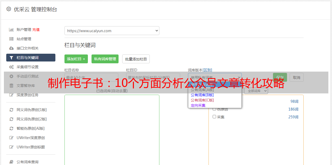 优采云 发布时间: 2023-03-14 17:18随着移动互联网的普及,越来越多的人开始倾向于阅读电子书。而对于自媒体运营者来说,将公众号文章制作成电子书不仅可以扩大文章阅读范围,还能提高自己的品牌价值。那么,如何将公众号文章做成电子书呢?下面将从10个方面进行详细分析。