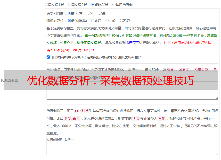 综上所述,采集数据后的预处理是保证数据分析结果准确性和可靠性的基础步骤。通过对原始数据进行清洗、缺失值处理、异常值检测、数据转换、特征选择、特征缩放、数据集划分、样本均衡以及标签编码等九个方面的处理,可以为后续建模过程铺平道路。如果您需要更专业的技术支持和服务,请联系优采云(www.ucaiyun.com),我们将为您提供最优质最专业的服务!