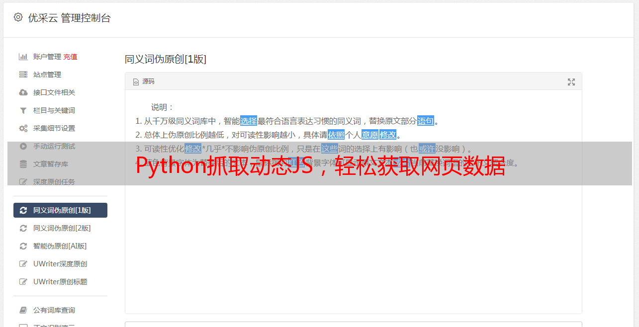 优采云 发布时间: 2023-03-16 10:15在现代互联网时代,网页已成为人们获取信息的主要途径之一。而对于开发者和数据分析师而言,获取网页数据也是必不可少的一项技能。本文将介绍如何使用Python打开网页并抓取动态JS,帮助您轻松获取所需数据。