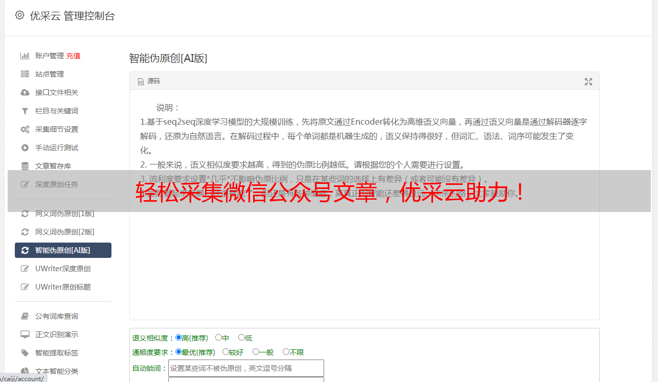 优采云是一个专业的数据采集平台,可以帮助用户无需编写代码,轻松抓取各类网站上的数据。其强大的功能和易用性受到了广大用户的青睐。下面我们就来看看如何使用优采云来采集微信公众号网页。