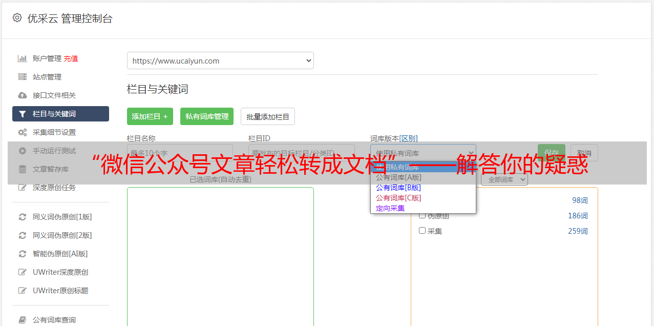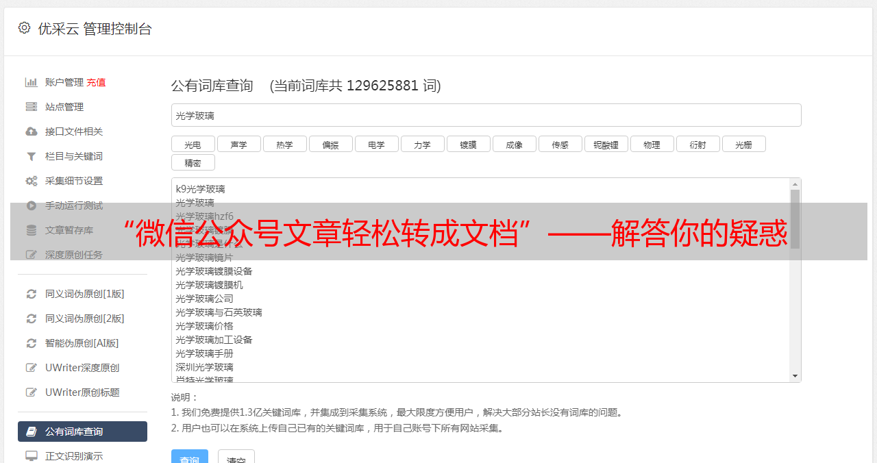 优采云 发布时间: 2023-03-16 16:16微信公众号是现代人获取信息的重要途径之一,每天都有大量的文章在上面发布,但是我们有时候需要把这些文章保存下来,用于学习或者工作。那么问题来了,微信公众号的文章可以转换成文档吗?答案是肯定的。