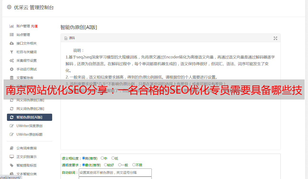 优采云 发布时间: 2021-06-11 22:25南京网站优化SEO分享:一名合格的SEO优化专员需要具备哪些技能