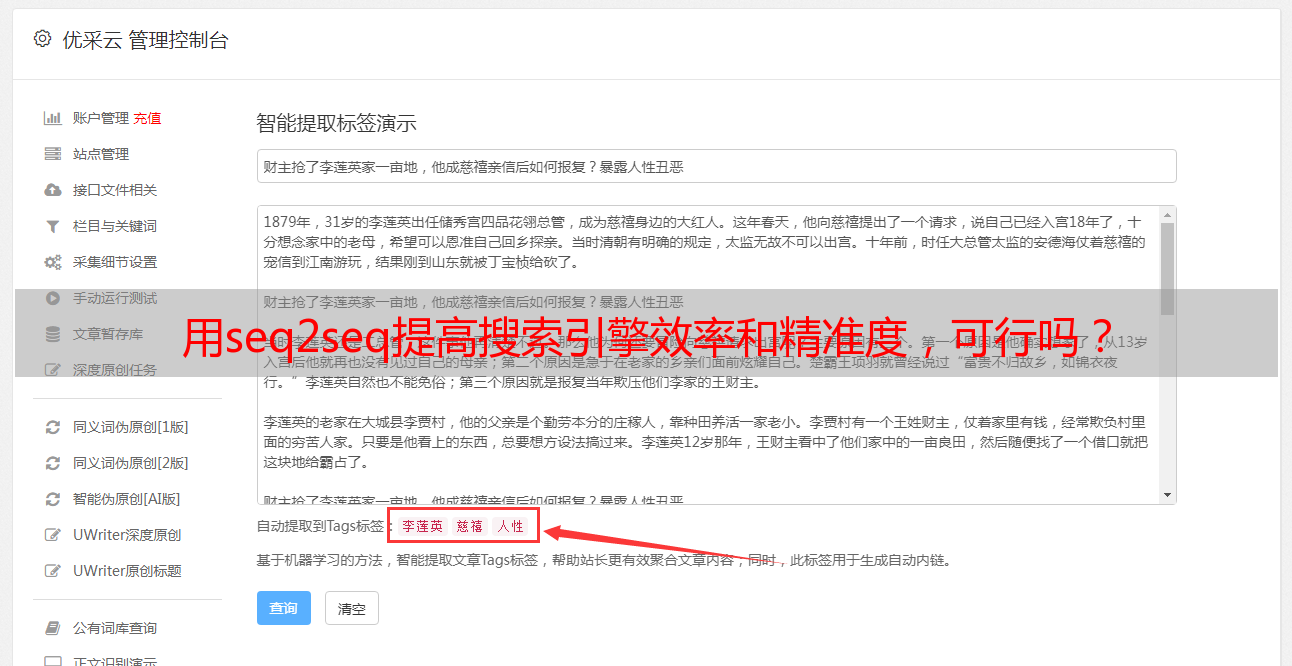 优采云 发布时间: 2023-03-16 23:13在信息爆炸的时代,搜索引擎是人们获取信息的重要途径。而如何提高搜索引擎的精准度和效率一直是技术人员关注的焦点。近年来,随着深度学习技术的发展,seq2seq模型被广泛应用于自然语言处理领域,那么,它能否用于搜索引擎呢?本文将从多个方面进行探讨。