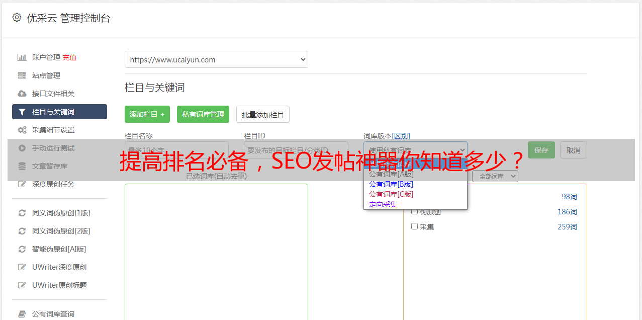 优秀的关键词是网站排名、流量和转化率等方面成功的重要因素。SEO发帖工具通过对搜索引擎热门关键词进行实时监控,可以让你快速找到最符合你文章主题和需求的高质量关键词,提高文章曝光度和点击率。