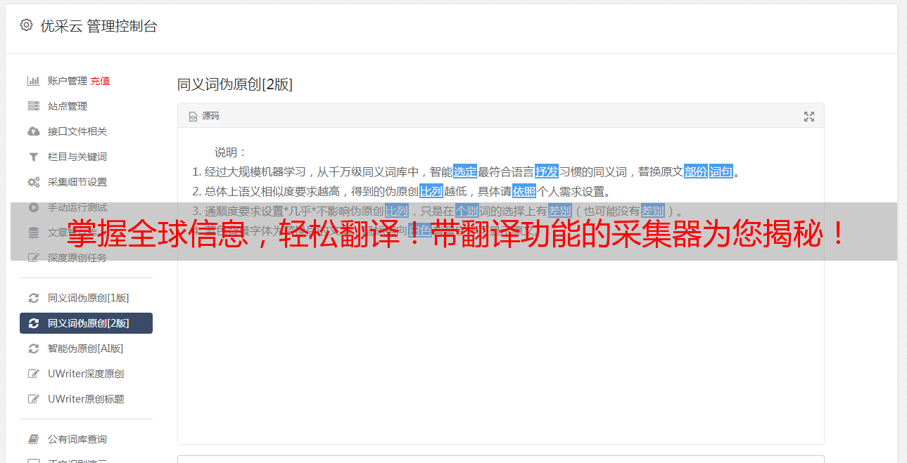1.消除语言障碍:使用带翻译功能的采集器,你可以轻松获取全球范围内的信息,无论文章是用哪种语言编写的。