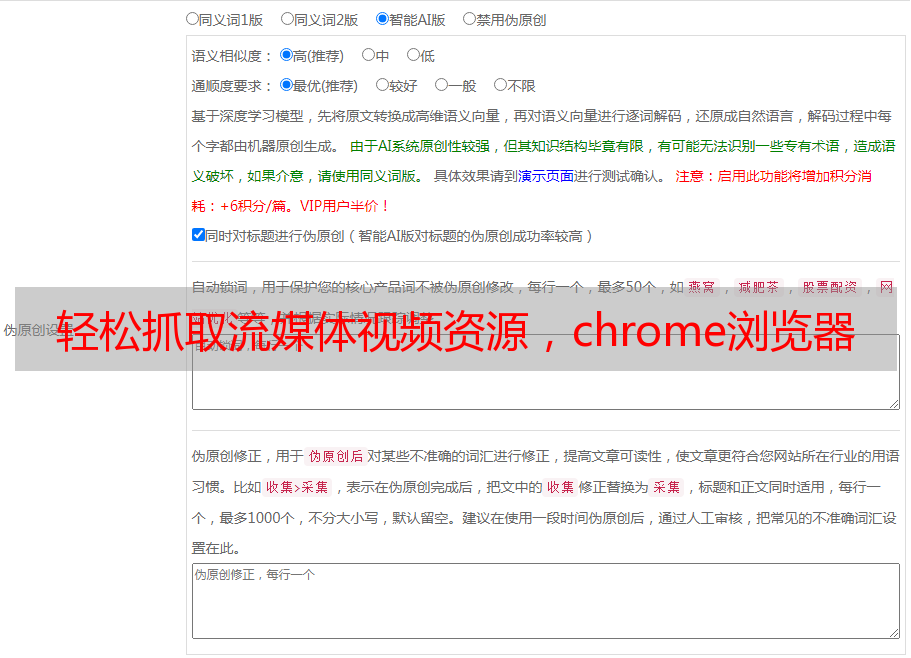 优采云 发布时间: 2023-03-27 02:11本文将为大家介绍在chrome浏览器中使用流媒体抓取工具,轻松获取你想要的视频资源的方法。我们将从以下9个方面进行逐步分析讨论:1.什么是流媒体抓取;2.chrome浏览器中的流媒体抓取插件;3.流媒体抓取插件的使用方法;4.如何选择最优质的流媒体抓取插件;5.流媒体抓取过程中需要注意哪些问题;6.流媒体抓取的法律风险及如何规避;7.流媒体下载速度提升技巧;8.如何合理使用流媒体抓取工具;9.结语与推荐。